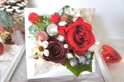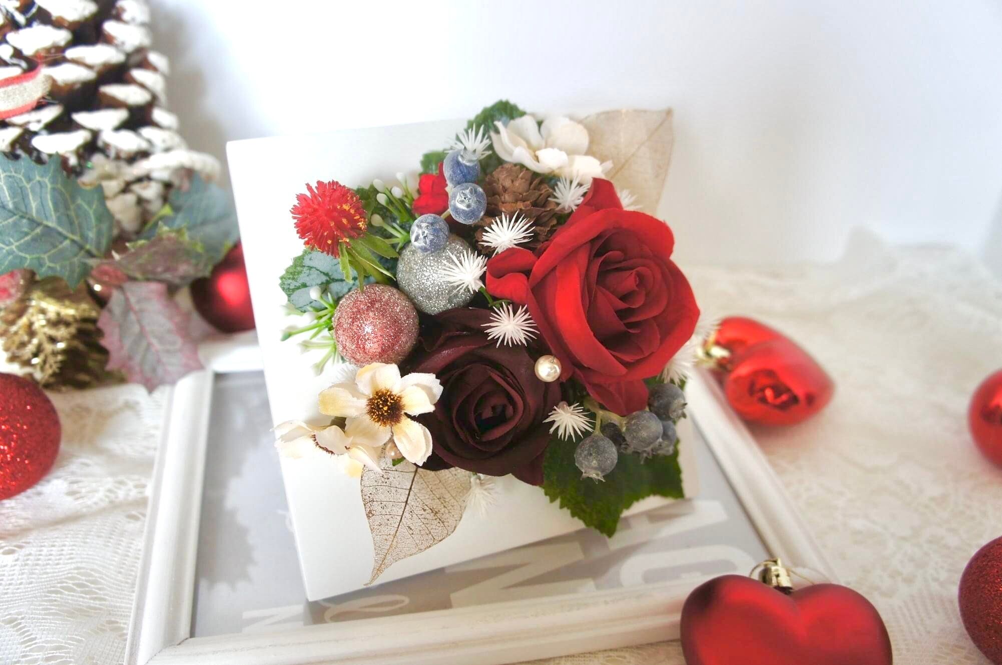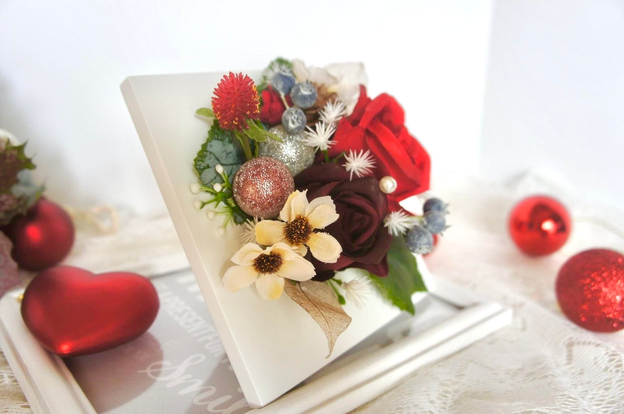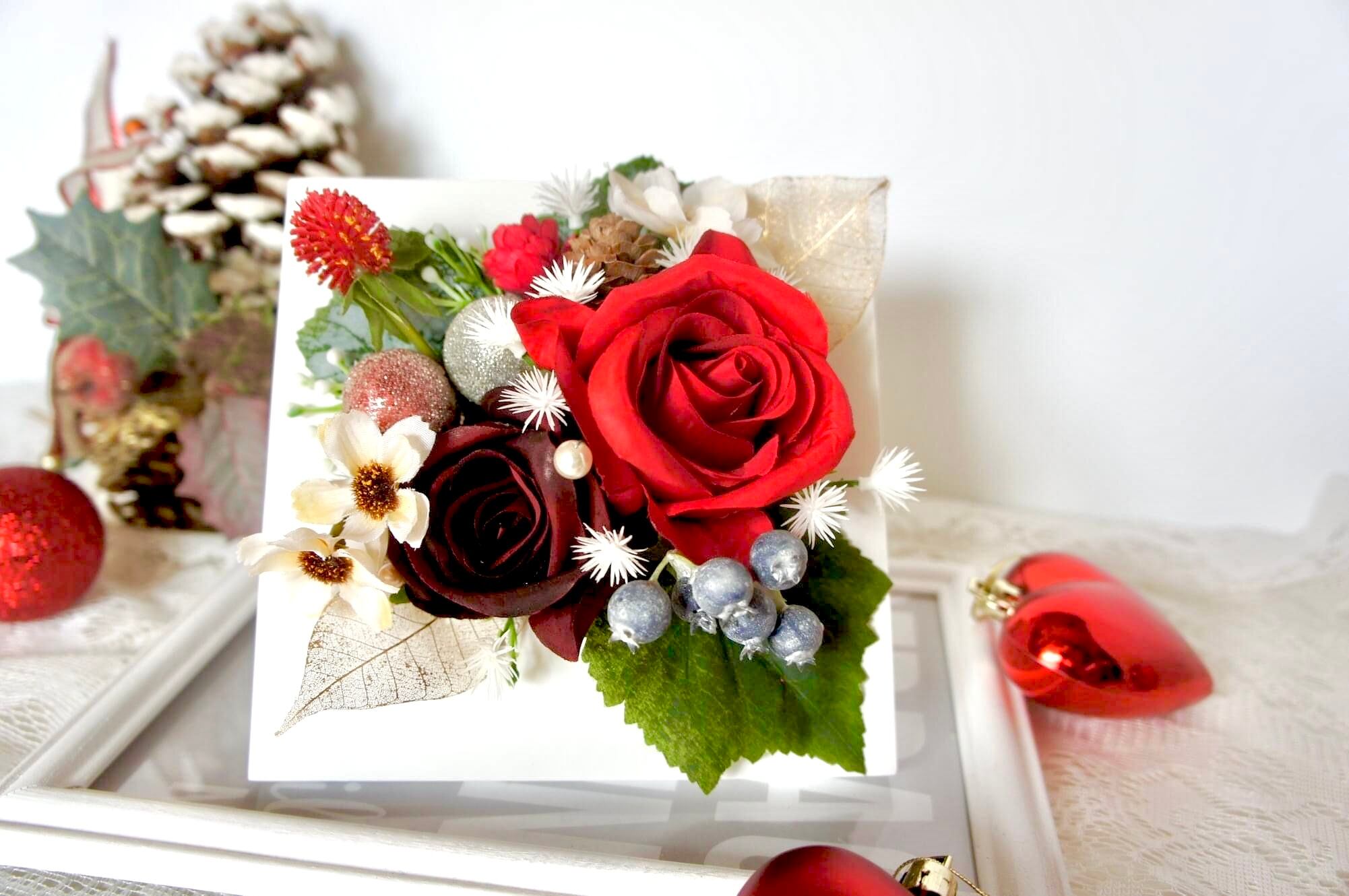 【X'mas】真紅のローズのホワイトフレームアレンジ